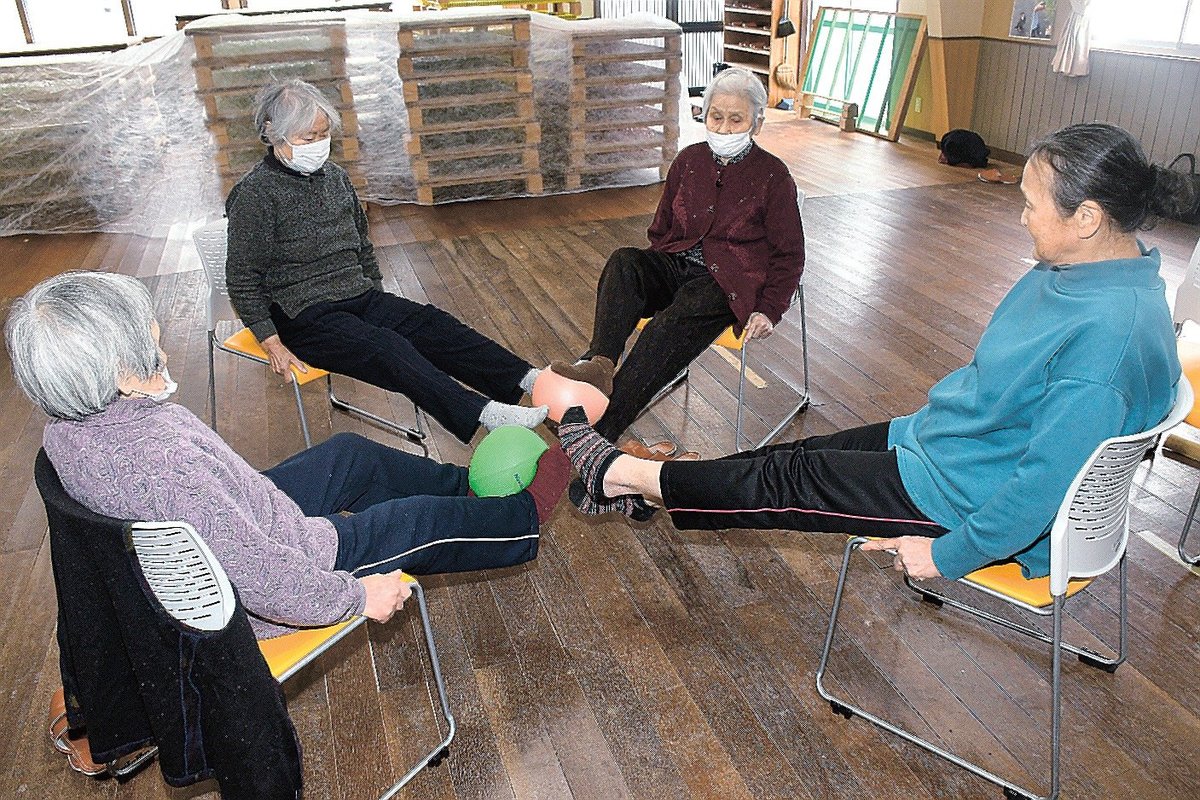最年長の左右田緑さん(94)は「教室は自分の健康のために毎回参加している。おかげでまだまだ元気だ」と笑った。教室は住民主体で20年以上、毎週開かれている。