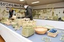 【出雲】出雲市多伎町を中心に活動する竹細工やわら細工の団体による作品展が多伎文化伝習館(出雲市多伎町口田儀)で26日、始まる。出品者らが25日、手作りしたわら草履や背負い籠などを並べ準備した。入場無料、3月1日まで。