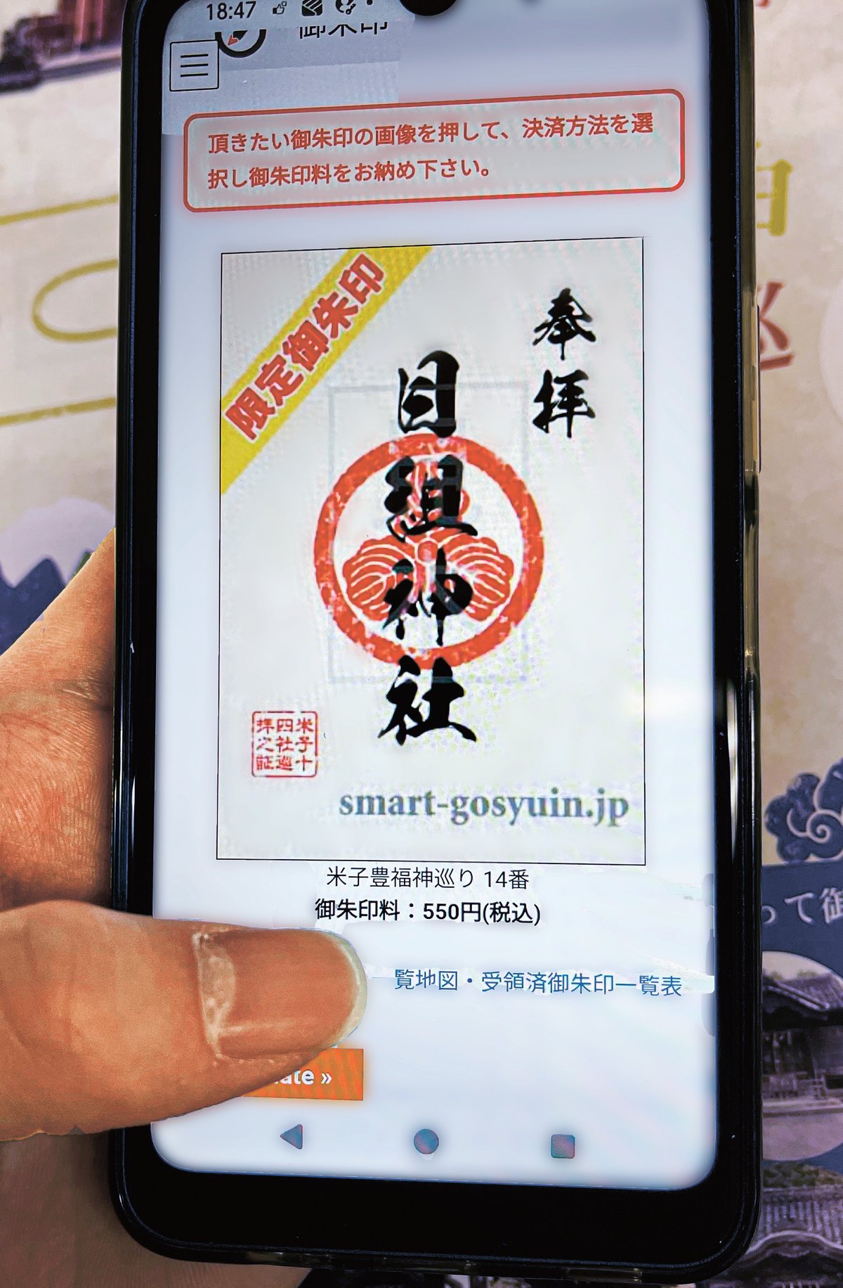 「米子豊福神巡り」と銘打ってスマホに各神社の御朱印を保存することで、初めて神社に立ち寄る参拝者にも気軽に楽しめるように工夫した。「スマート御朱印」は、旅行先で御朱印帳を忘れたとか、複数冊数を持ち運ぶのが大変という参拝客の声を受け、ソフトウエア開発のビーグルー(名古屋市)が企画した。米子神社会が協力して市内14社も登録している。