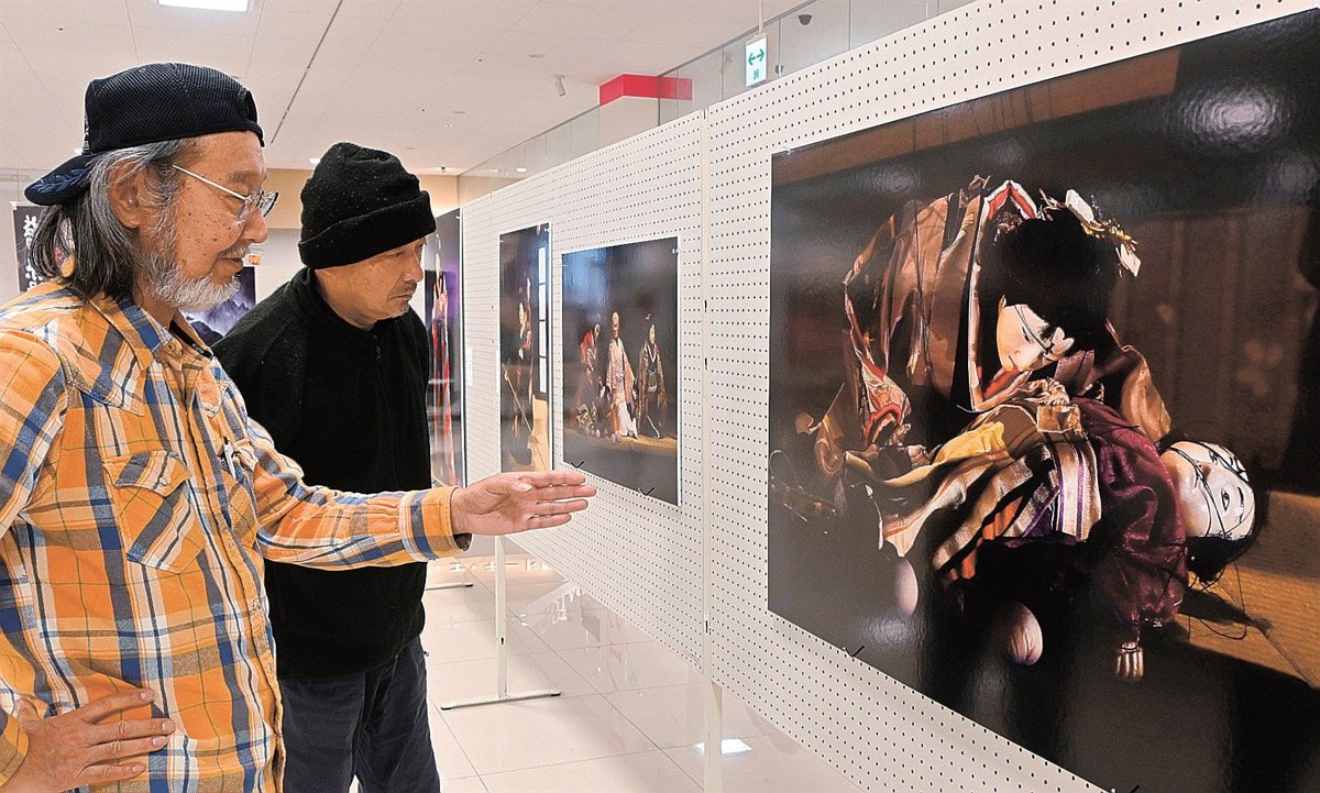 【益田】島根県無形民俗文化財の伝統芸能「益田糸操り人形」の写真撮影を続けるテレビカメラマン、島津ヒロユキさん(66)=浜田市旭町今市=の写真展が28日、益田市常盤町のキヌヤ益田ショッピングセンターで始まった。人形の精巧な造形や糸を操る手の動きなどを撮影した28点に来場者が見入っている。入場無料、5日まで。