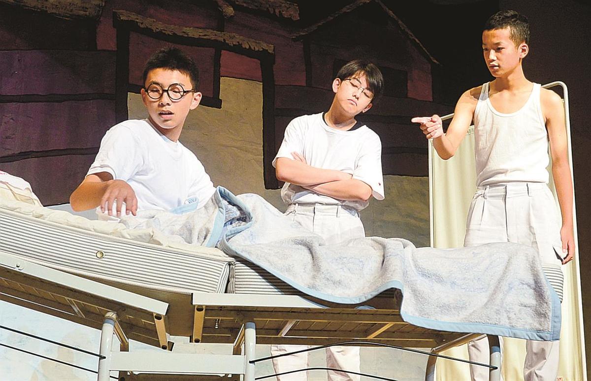 生徒たちが、飢えや重労働の極限生活の中でも「希望を捨ててはいけない」と先頭に立って仲間を励まし続け、帰還を目指す山本さんの強固な意志が伝わる舞台を演じた。
