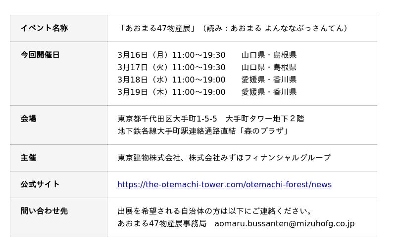・ 47都道府県の名産品を集めた「あおまる47物産展」を大手町タワーで2025年1月より定期開催
