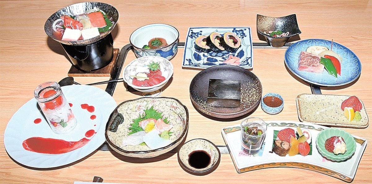 特産のイチゴを使った会席料理などが安来市南十神町の「季節料理定九郎(さだくろう)」で提供されている。特産イチゴのPRの一環で、市内で栽培された紅ほっぺを使った料理10種が5月初旬まで楽しめる。