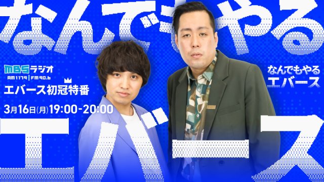 お笑いコンビ・エバース(佐々木隆史、町田和樹)のMBSラジオ冠特番『なんでもやるエバース』が、3月16日午後7時~8時に放送されることが決まった。