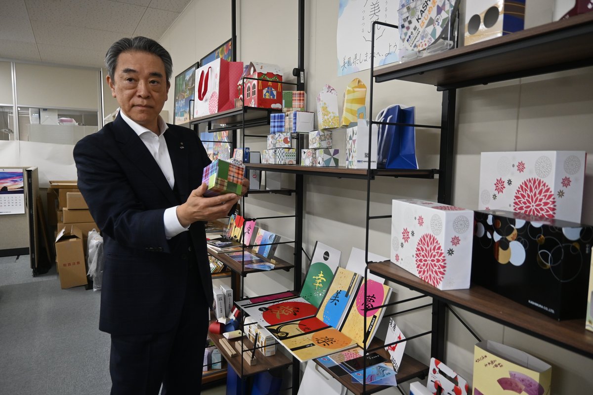 デジタル印刷の設備が当社の武器で、小ロットで短納期の対応ができます。光沢を生むホログラム加工やあらゆる形状に応じるカッティング技術、偽造を防ぐ印刷機能を兼ね備え、箔やニスを出力できるデジタル加飾機も導入しています。試供品やプレゼンテーションに使う企業から引き合いがあり、収益率が高い分野でもあります。業界でこれほどの設備はほかにないと考えており、全国から視察が相次いでいます。