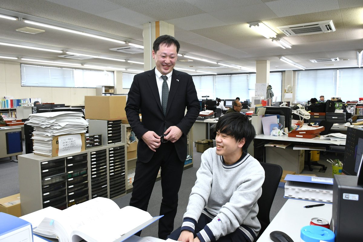 課題は中堅層が薄く、若手とベテランで組織を支えています。当社は平均年齢50代前半、20代が10名で、そのうち女性が5名。近年は専攻不問の「やる気重視」へ転換し、新卒採用も順調です。隠岐限定採用では2名が入社しました。現場ではベテランと若手がペアを組み、技術伝承と知見共有を通じてチーム成長を重視しています。