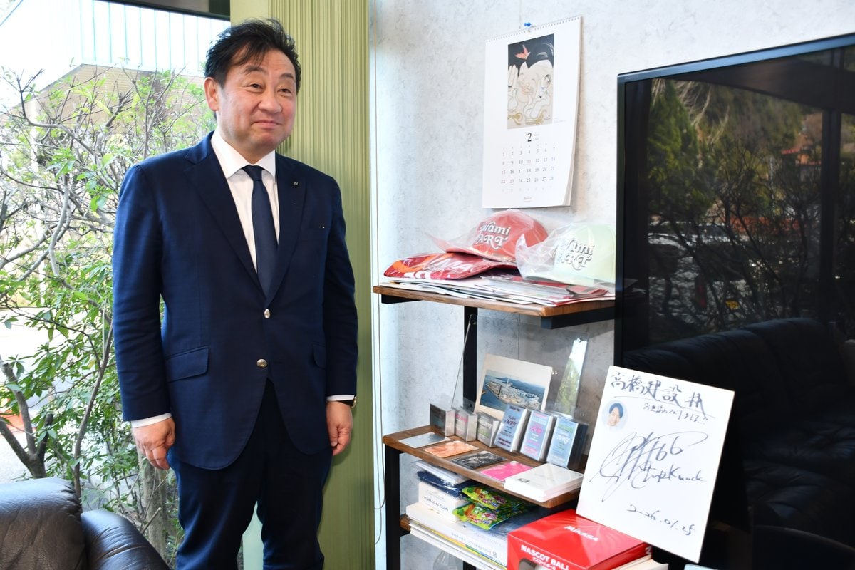 高橋宏聡=島根県益田市出身(53歳)2015年に現職に就任。趣味は家族や友人と旅行に行くこと!今年はヨーロッパに行きたいと思っている。もう一つの趣味であるゴルフは常に100を切れるようにする為、練習を行く回数を増やしたい!