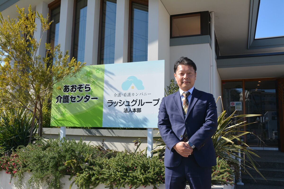 市内一般企業に就職したのち2009年(有)おおぞら(現在は吸収合併)に入社。2011年父親とともに㈱ラッシュ設立。専務取締役に就任。これまで県内の介護事業6法人11事業所をM&Aによる吸収合併に携わる。趣味は低い山登りと晴れた日のゴルフ。