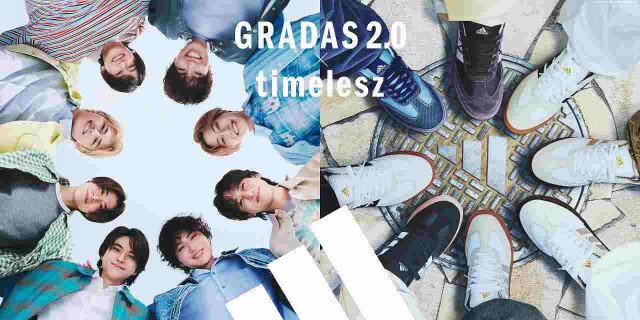 同キャンペーンのCMでは、「ずっと変わらない、僕らのままで」をテーマに、互いの肩を寄せ合い円を描くメンバーの姿を表現。その足元には、どんな時代も色褪(あ)せることのない「GRADAS 2.0」が寄り添う。timeleszメンバーそれぞれが履いているGRADAS2.0に合わせたスタイリングにも注目だ。