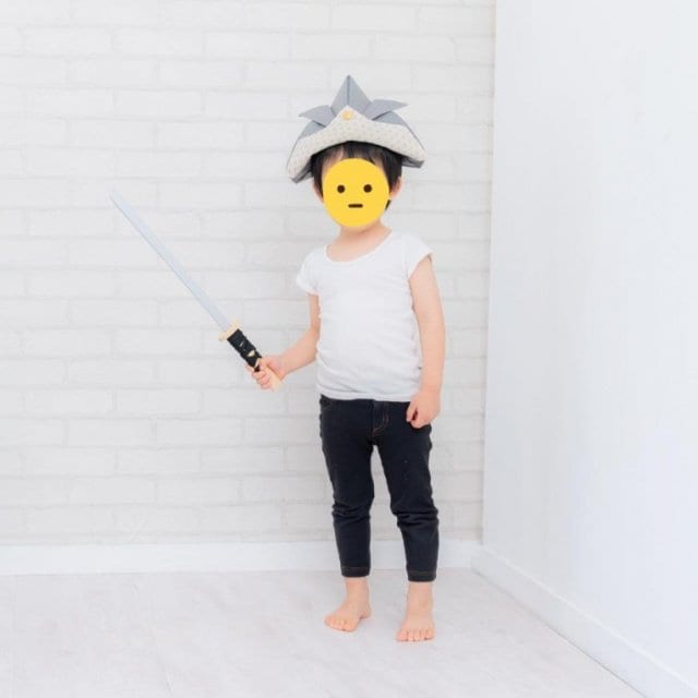 「なんとか服を脱がせることはできたものの、袴は頑として拒否。私と夫、スタジオのスタッフの方々で説得しましたが意思は固く、撮影時間も限られていたため『このまま撮影しましょう』という流れになりました。せめて七五三らしさを…と思い、小物だけお借りしました。普段から被り物が好きなこともあり、兜だけは喜んでかぶっていました」
