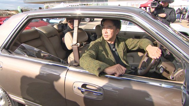 「1925年~2025年」をテーマに出展された車250台のなかから、おぎやはぎが「青春の車」と懐かしんだのが、1988年に登場した日産の“高級セダン”。バブル期に“現象”を引き起こすほど一大ブームとなった1台だ。ヤフオクで手に入れたというオーナーは、今では珍しい「品川33」という2桁ナンバーを引き継いでいるものの「当初買った金額からはだいぶ維持費が…」と告白する。