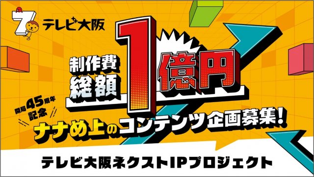 テレビ大阪はこのほど、開局45周年を記念して、制作費総額1億円のコンテンツ企画を募集するプロジェクトを発表した。