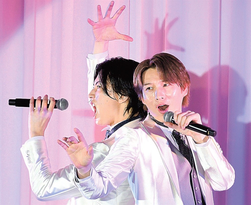 ステージに上がった2人は、所ジョージさんが作詞・作曲した「十五夜の月」のほか、カバー曲など計11曲を披露した。観客はペンライトを振って、もり立てた。拓也さんは「多くの人との出会いで今日がある」と感慨深そうに話し、翔司さんは「また島根の舞台に立ちたい」と再会を誓った。