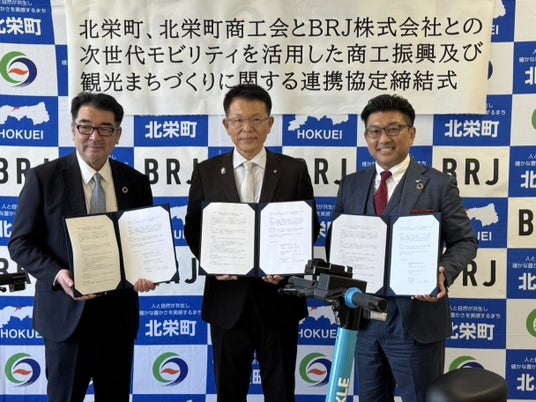 安全で新しい交通手段と地域ごとに最適化した交通オペレーションを提供するBRJ株式会社(本社:東京都港区、代表取締役社長:宮内 秀明、以下「BRJ」)は、北栄町、北栄町商工会、BRJの3者で、「次世代モビリティを活用した商工振興及び観光まちづくりに関する連携協定」を3月26日(木)に締結しました。