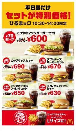 「ひるまック」は、「てりやきマックバーガー」や「ビッグマック」、「ダブルチーズバーガー」、「てりやきチキンフィレオ」、「フィレオフィッシュ」の5種類のセットを、平日午前10時30分~午後2時限定で600円台という価格で提供する人気メニュー。通常より60円以上お得に購入できる点が支持され、2022年3月の開始以降、2025年12月末までの期間で累計2億セットを突破した(2022年3月22日~2025年12月31日までの期間の平日かつ午前10時30分~午後2時注文数から算出)。