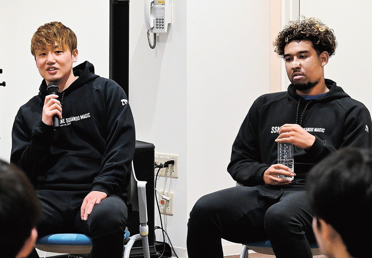 横地選手はリハビリ中の気持ちについて「バスケを一切見ない期間もあったが、気持ちが楽になれば体も追い付いてくる。焦らず自分のペースでやれば結果は出る」と伝えた。