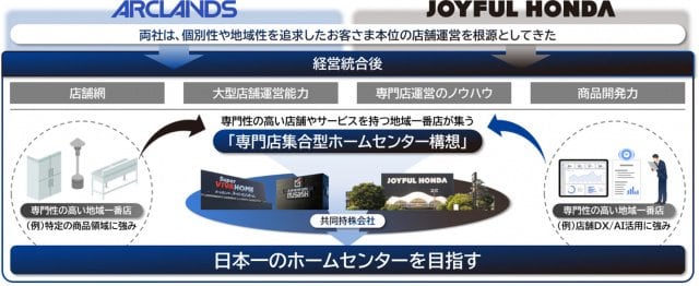 さらに、「専門店集合型ホームセンター構想」を掲げ、両社の構想に賛同するホームセンター各社との連携を広げていく。「経営統合がゴールではなく、今後も専門性の高い店舗やサービスを持つ地域一番店が集うことで、日本一のホームセンターを目指していきます」とする。