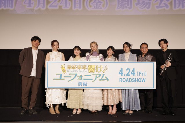 アニメ『響け!ユーフォニアム』シリーズ完結編となる『最終楽章 響け!ユーフォニアム』前編(24日公開)完成披露上映会が15日、東京・新宿ピカデリーで行われ、黒沢ともよ(黄前久美子役)、朝井彩加(加藤葉月役)、豊田萌絵(川島緑輝役)、安済知佳(高坂麗奈役)、戸松遥(黒江真由役)、小川太一監督が登壇した。