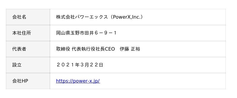 株式会社ちゅうぎんエナジー(岡山市 代表取締役 松岡 信一)は、株式会社パワーエックス(玉野市 取締役 代表執行役社長CEO 伊藤 正裕)と蓄電池を活用した再生可能エネルギーの地産地消スキームを共同で推進する包括的な基本合意書を締結しましたことをお知らせいたします。