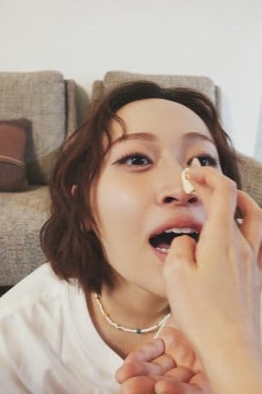 それぞれのお気に入りカットも紹介。丸山は、河川敷で撮影したミチの自転車越しショットがお気に入りだそうで、「ヘアも顔もポーズもとっても素敵でした!」と大絶賛。ミチは、鼻にクリームを付ける丸山のショットがお気に入りだと話し、「かわいい」と笑顔をみせた。