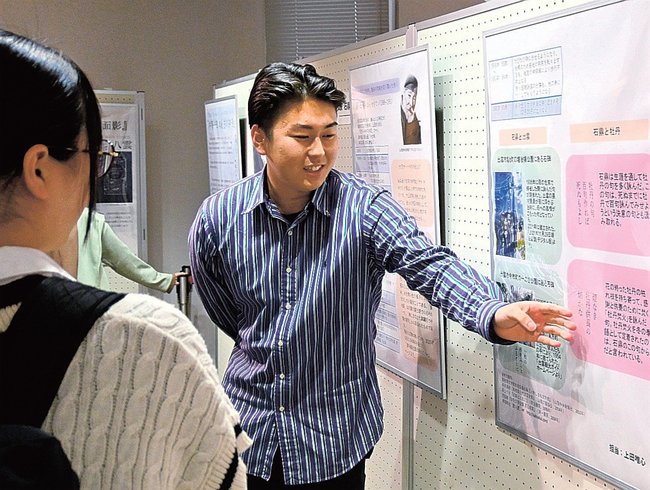 圖子(ずし)結子さん(20)=法文学部言語文化学科3年=らのチームは出雲俳句史の研究にも力を入れた俳人・桑原視草(しそう)を取り上げ、極めて謙虚な性格で、周囲からは力量を深く認められていたと解説。病気や事故で生死の境をさまよい、軍務にも動員された背景にも触れ、厳しい現実を生き抜いた「力強い人間」と考察。酒好きだった視草が禁酒について詠んだ句も紹介した。
