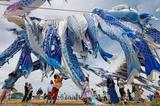 青いこいのぼり東松島の空を舞う