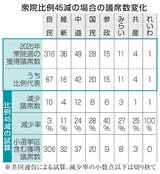 比例45減で自維80%超占有 衆院定数、2月選挙結果で議席試算 中小政党に影響、中国2減