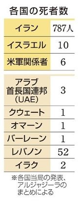 イランで787人死亡 中東各国、民間人も犠牲