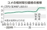 25年産米 卸値初の下落 島根「きぬむすめ」上げ3万4556円 11月