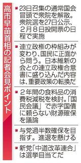 首相、23日の衆院解散を表明 27日公示、2月8日投開票 消費税減税、政権枠組み争点