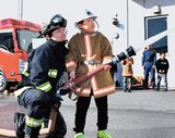 児童、ホース手に放水 一日体験、消防の仕事学ぶ 安来