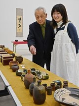 孫と一緒に花器や茶わん展示 岡山の近藤さん 松江市の島根県立美術館で作品展