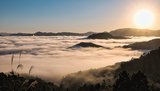 雲の大海原、朝日に染まる 川本町