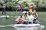 パドルこぎ 湖上で交流 飯南・志津見ダム湖で水上スポーツ・SUP体験会