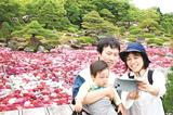 水面彩る3万輪のボタン 松江・由志園