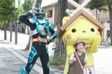 【動画・写真】ロケ地・出雲に仮面ライダーガッチャード参上! 神門通りでしまねっこと新作映画PR 子どもたちと記念撮影も
