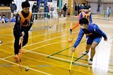 【動画】奥出雲でホッケー交流会 東京五輪出場の膳棚さん、錦織さんが児童にアドバイス