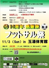 11月3日「フットサル祭」 松江玉湯体育館 20日まで出場者募集