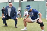 元横綱の白鵬翔さん、石見智翠館高生にエール 花園出場のラグビー部員、四股踏み方を伝授