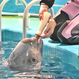 アーリャの子イルカ、哺乳器ミルクで成長したよ アクアス、報道陣に公開 天国の母の分も「命のバトンつなぐ」