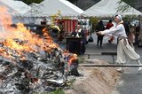 燃え盛る炎に無病息災祈る 安来・清水寺で「大梵焼祭」