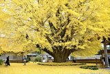樹齢600年超え、浄善寺の大イチョウ見ごろ 黄金のじゅうたん、参拝客ひっきりなし