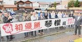 琴桜の初優勝祝う横断幕 祖父の銅像近くに設置 倉吉で祝賀イベント