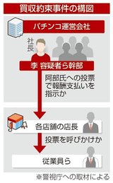 投票報酬、全31店舗で約束か 公選法違反疑い社長ら幹部 パチンコ運営会社
