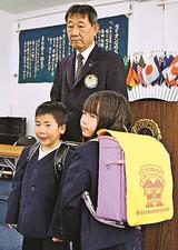 ランドセルに付けて登下校して 益田、黄色のカバー贈る