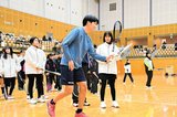 ソフトテニス「最新の技術」中学生学ぶ 出雲、世界選手権国別対抗優勝の内田選手ら4人が指導