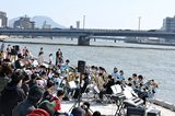松江「水辺ステージ」完成記念、小学生吹奏楽団が演奏披露 市民300人楽しむ