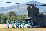 救助人員や物資 大型ヘリで輸送 安来で地震想定訓練
