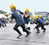 力勝負!トラック綱引き 江津 雨の中、26チーム懸命