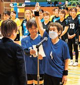 「たくさんの人に感謝し頑張る」 台場・景山選手が宣誓 海産物のきむらや・ウミライ杯第26回中海・宍道湖・大山圏域Ms.バレー